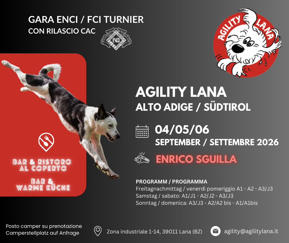 Weitere Infos zur Anmeldung unter agility@agilitylana.it